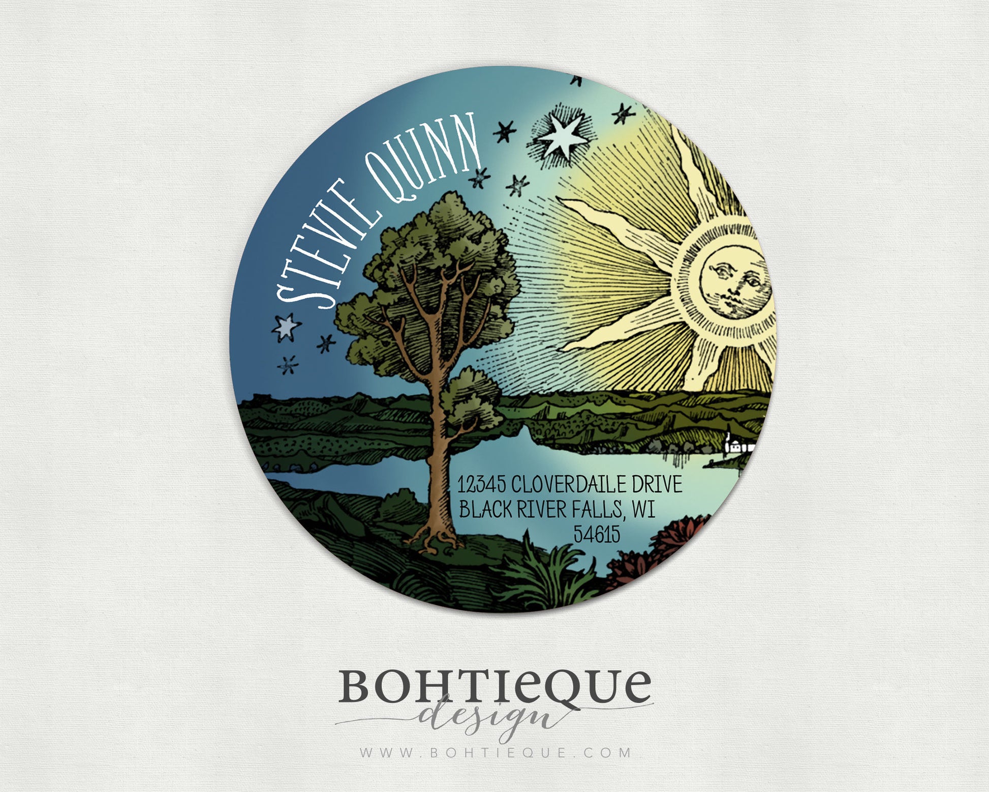 The Celestial Woodcut Address Label takes you back to innocent days spent in nature.